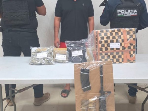 Detienen a Dos hombres por Presunto Narcomenudeo en Tulum; Aseguran Drogas y un Arma de Fuego