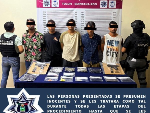 Aseguran Arsenal y Más de 130 Dosis de Droga a Cinco Detenidos en Tulum