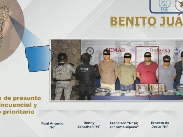 17 Nov. 2025Tras ser detenidos, los cinco hombres fueron puestos a disposición de la Fiscalía General del Estado de Quintana Roo, que determinará su situación jurídica…