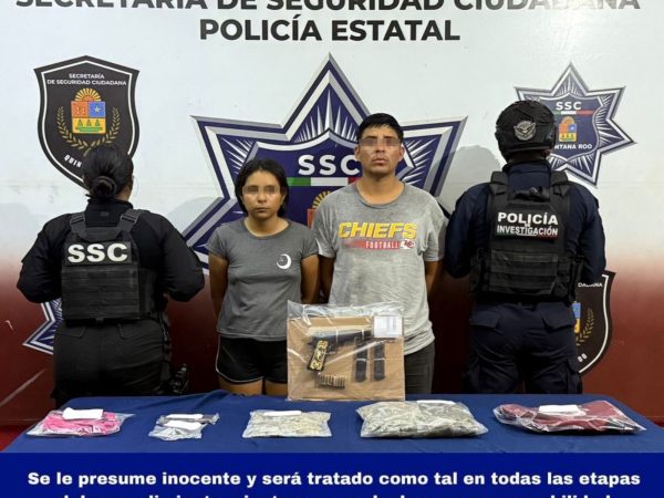 Detienen a Pareja con Marihuana y Arma de Fuego en la SM 101 de Cancún