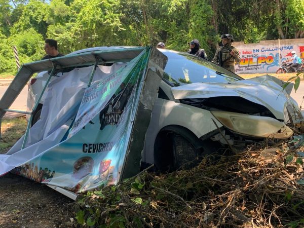 Aparatoso Accidente en Carretera al Aeropuerto de Tulum: Ocupantes se Dan a la Fuga Tras Chocar Contra Poste