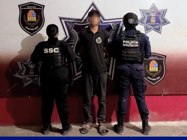 Elementos de la SSC Aseguran a Sujeto por la Posible Comisión del Delito de Daños en el Fraccionamiento “Mundo Hábitat” en Playa del Carmen