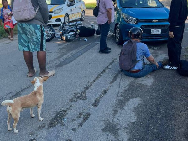Choque entre auto y motocicleta deja un lesionado en cruce de Chetumal