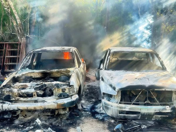 Incendio Consume Dos Vehículos en Predio de Extranjero en la Zona de Dos Ojos, Tulum