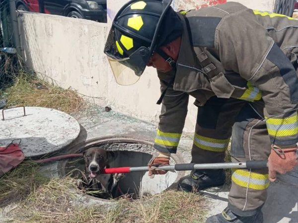 Rescatan a Perrito que Cayó en un Registro Eléctrico