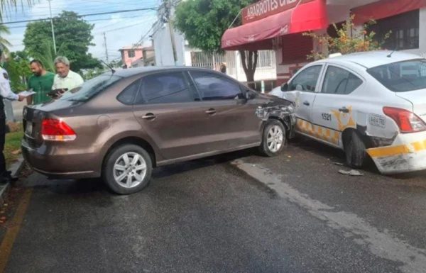 Choque Entre Auto Particular y Taxi Deja Daños Materiales en la Colonia Tumben Cuxtal