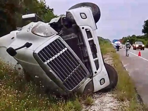 Tráiler Cargado de Fresas Vuelca en Tramo Carretero del Sur de Quintana Roo