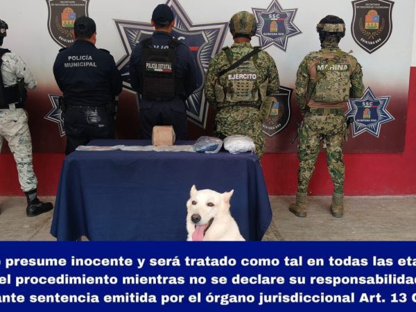 12 Ene. 2026Autoridades federales, estatales y municipales aseguraron una mochila con presuntos narcóticos en la terminal de autobuses de Othón P. Blanco, tras un marcaje positivo…