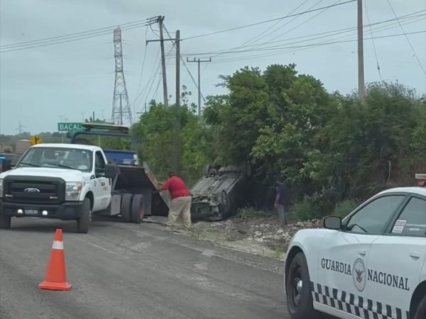 Vuelca Automóvil en la Carretera Chetumal-Bacalar; El Exceso de Velocidad y la Lluvia, Factores Clave