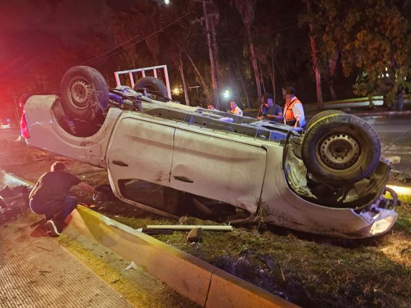 Pick Up se Vuelca Tras Chocar Contra Camellón en el Bulevar Colosio