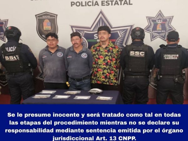 5 Nov. 2025Tres hombres fueron detenidos por la Policía Estatal Preventiva en la colonia Solidaridad, Chetumal, tras ser sorprendidos manipulando presunta droga. Se les aseguraron 24…