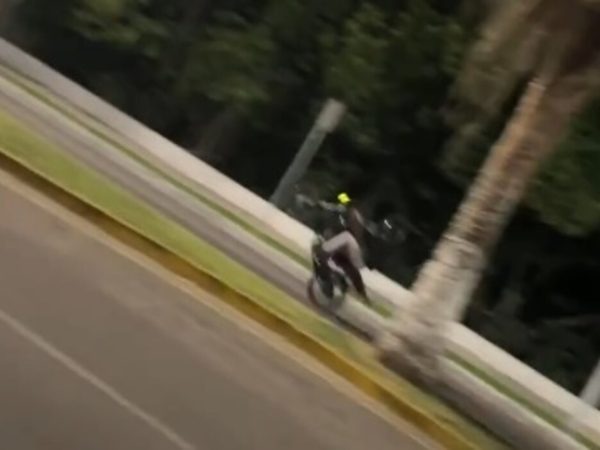Acariciando la Muerte, Motociclista Desafía la Vida frente al Palacio de Gobierno