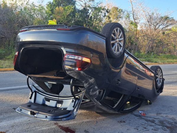 Sujeto Alcoholizado Choca de Frente con Otro Vehículo en Carretera Tulum-Cobá; Deja Tres Lesionados y Graves Daños Materiales