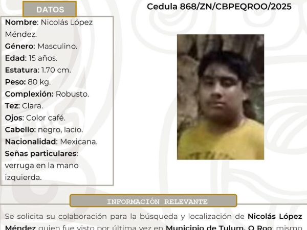 Buscan a Menor Desaparecido en Tulum; Autoridades Piden Apoyo Ciudadano