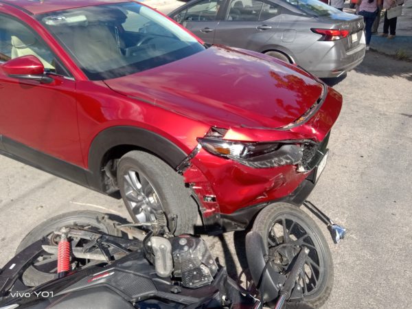 Choque entre Motocicleta y Patrulla en Chetumal Deja solo Daños Materiales