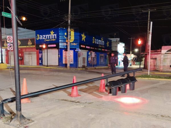 Tráiler Derriba Semáforo al Circular en Sentido Contrario en José María Morelos