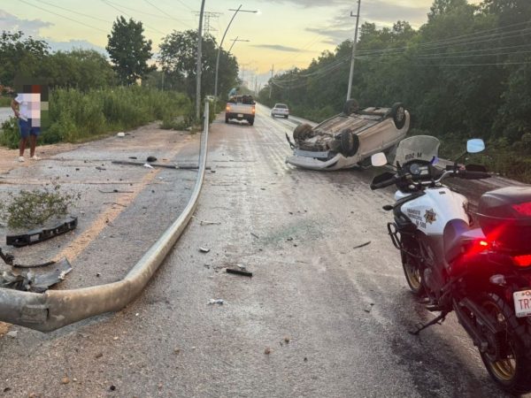 Conductor se Salva de Milagro tras Volcadura en la Carretera Felipe Carrillo Puerto–Santa Amalia