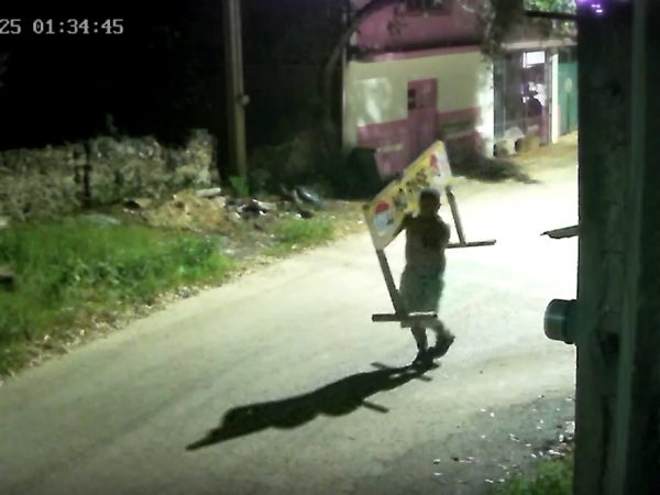 Cámaras Captan a Ladrón en Plena Acción en la Colonia Madrazo: se Roba un Letrero de Tránsito en Madrugada