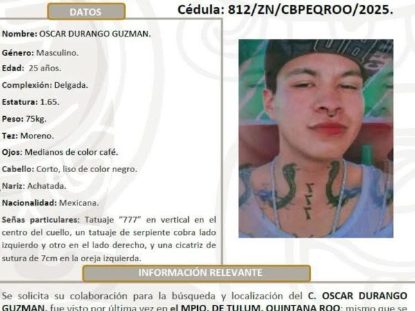 Buscan a Joven Desaparecido en Tulum desde el 7 de Septiembre