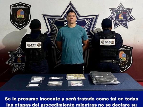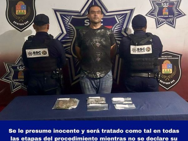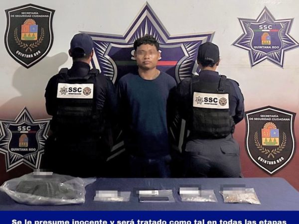 Detenido en la Supermanzana 248 de Cancún con Marihuana, Cristal y Cocaína
