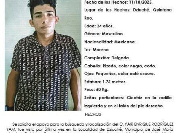 12 Oct. 2025Redacción / CAMBIO 22 Dziuché, Q. Roo, 12 de octubre .— La Fiscalía General del Estado de Quintana Roo emitió una ficha de búsqueda…