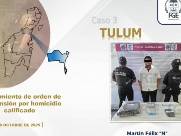13 Oct. 2025Redacción / CAMBIO 22 Tulum, 13 de octubre. – Agentes de la Policía de Investigación (PDI) de la Fiscalía General del Estado (FGE) cumplimentaron…
