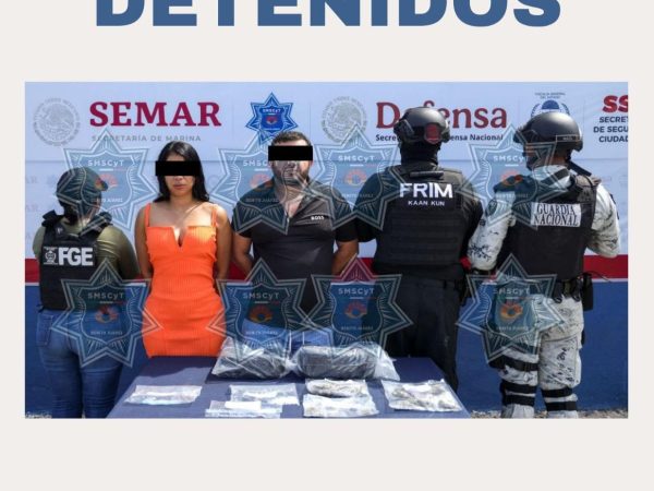 8 Oct. 2025Redacción / CAMBIO 22 Cancún, 8 de octubre.- Una mujer y un hombre fueron detenidos en la Supermanzana 316 de Cancún, por su presunta…