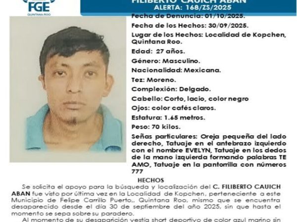Activan Ficha de Búsqueda por la Desaparición de Joven en Felipe Carrillo Puerto