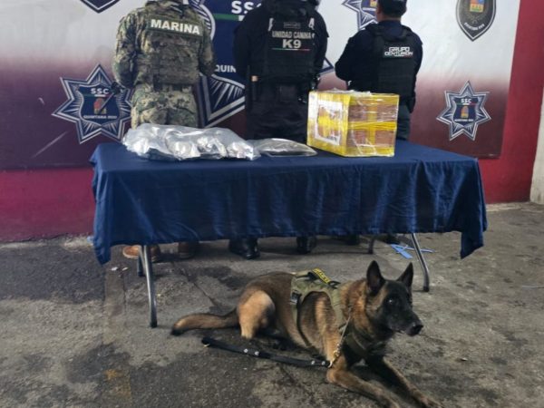 Canino de la SSC Localiza Marihuana Oculta en Paquetería de Cancún