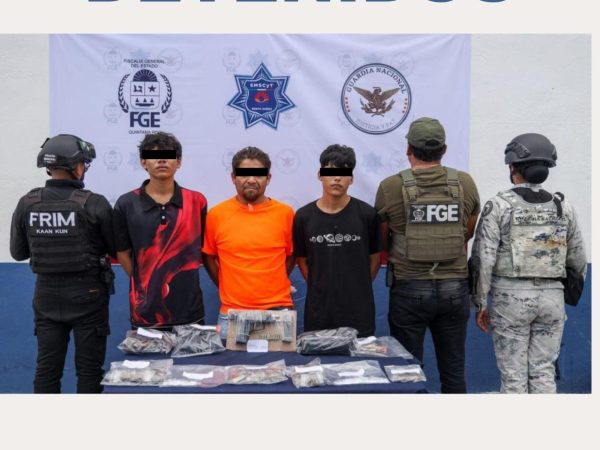 Capturan a Tres Hombres en la SM 260 de Cancún con Arma de Fuego y Más de 150 Dosis de Droga