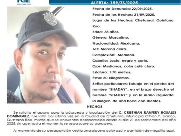 23 Sep. 2025La Fiscalía activó fichas de búsqueda en Chetumal para localizar a los hermanos Cristhian y Ángel Rosales Domínguez. Ambos presentan señas particulares y sus…