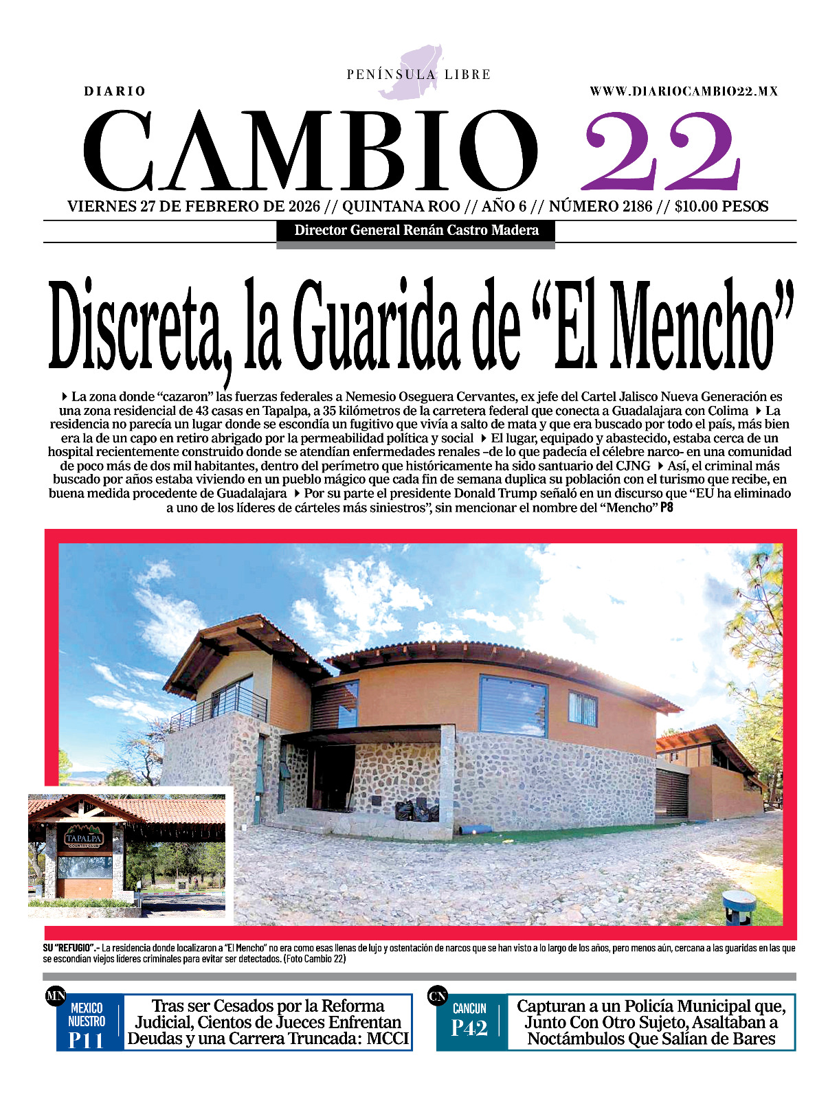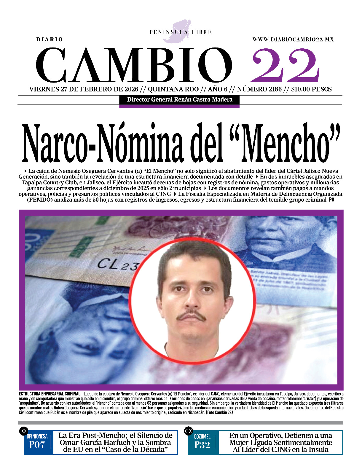 1 Dic. 2025Redacción / CAMBIO 22 Cancún, 1 de diciembre. – Será este martes 2 de diciembre, cuando unJuez de Control determine la situación jurídica de…