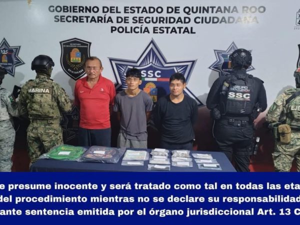 Detienen a Tres Hombres en Cancún con Más de un Centenar de Dosis de Droga