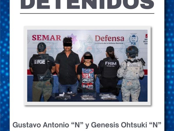 27 Ene. 2026Redacción / CAMBIO 22 Cancún, 27 de enero. – Un hombre y una mujer fueron detenidos por elementos de la Guardia Nacional, la Fiscalía…