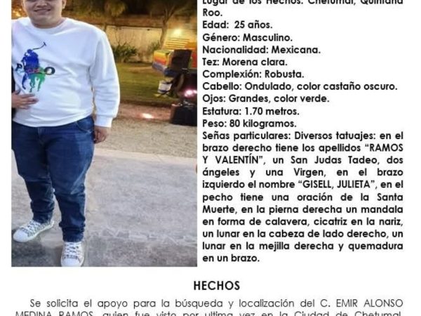 Fiscalía Emite Ficha de Búsqueda por Desaparición de Joven en Chetumal