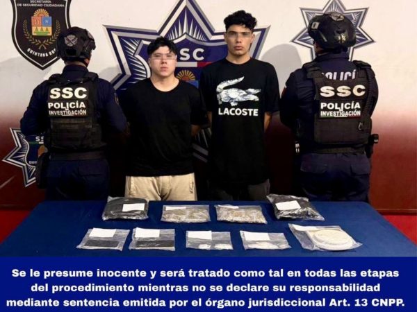 4 Sep. 2025Redacción / CAMBIO 22 Cancún, 4 de septiembre.- Dos hombres identificados como Juan Antonio “N” y Kevin Javier “N”, fueron detenidos en la supermanzana…