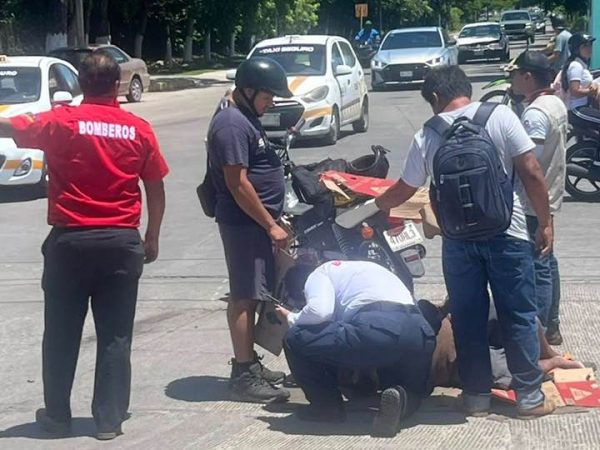 Motociclista Resulta Lesionado Tras Choque en Cruce de Calles Tihosuco y Petcacab