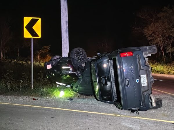 Chocan Dos Vehículos y Ambos Acaban Volcados en la Vía Mérida-Cancún