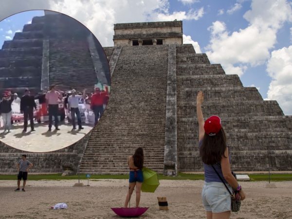 Maestros de la CNTE Protestan por Dos Horas Frente a la Pirámide de Kukulkán