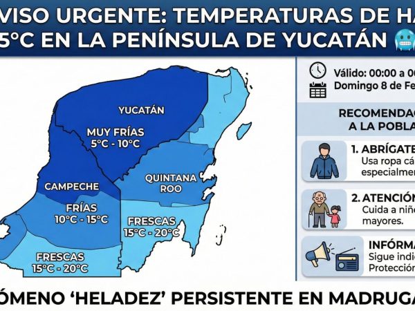 Alertan por Bajas Temperaturas para Yucatán en las Próximas Horas; Pronostican que Llegarían hasta los 5° en la Península