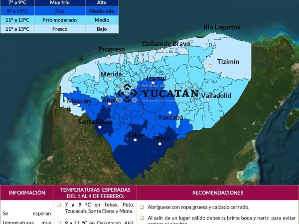 Protección Civil Ratifica Evento de Frío Intenso en Yucatán y Precisa Zonas con Mayores Descensos