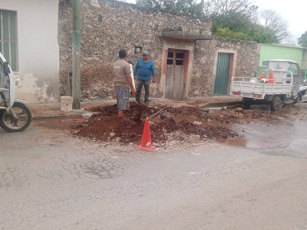 Fuga de Agua Y Obras de Emergencia Colapsan Circulación en Calle 45-A de Tizimín, Yucatán