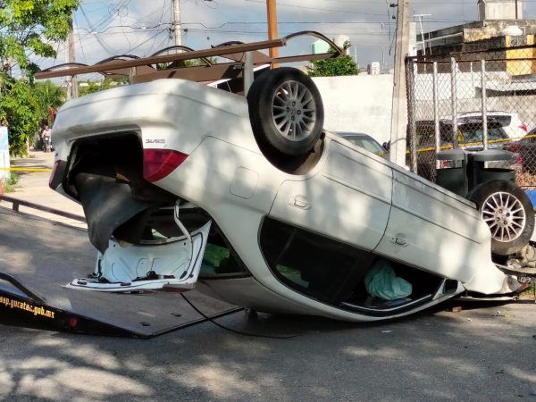 9 Ago. 2025Luis Tamayo Mendicuti / CAMBIO 22 MÉRIDA, YUC.- 9 de agosto.- Con las llantas al aire quedó un Honda Civic que esta mañana volcó…