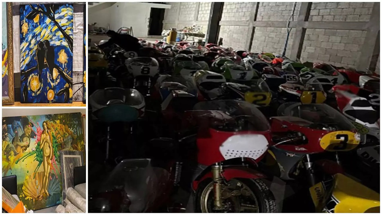 “Mediante un despliegue coordinado, se catearon los domicilios donde se hallaron dosis de metanfetamina y marihuana, 62 motocicletas de alta gama, dos vehículos, obras de arte, dos medallas olímpicas, cartuchos, un cargador y diversa documentación”, informó el gobierno federal.