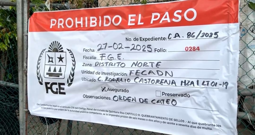 Cancún, 27 de febrero.- Un fuerte operativo se registró la tarde de este jueves en la Supermanzana 95 de Cancún, donde elementos de la Fiscalía General del Estado, con apoyo del Ejército, Guardia Nacional, Marina y la Secretaría de Seguridad Ciudadana, realizaron dos cateos simultáneos en distintos inmuebles como parte de una investigación relacionada con delitos contra la salud.