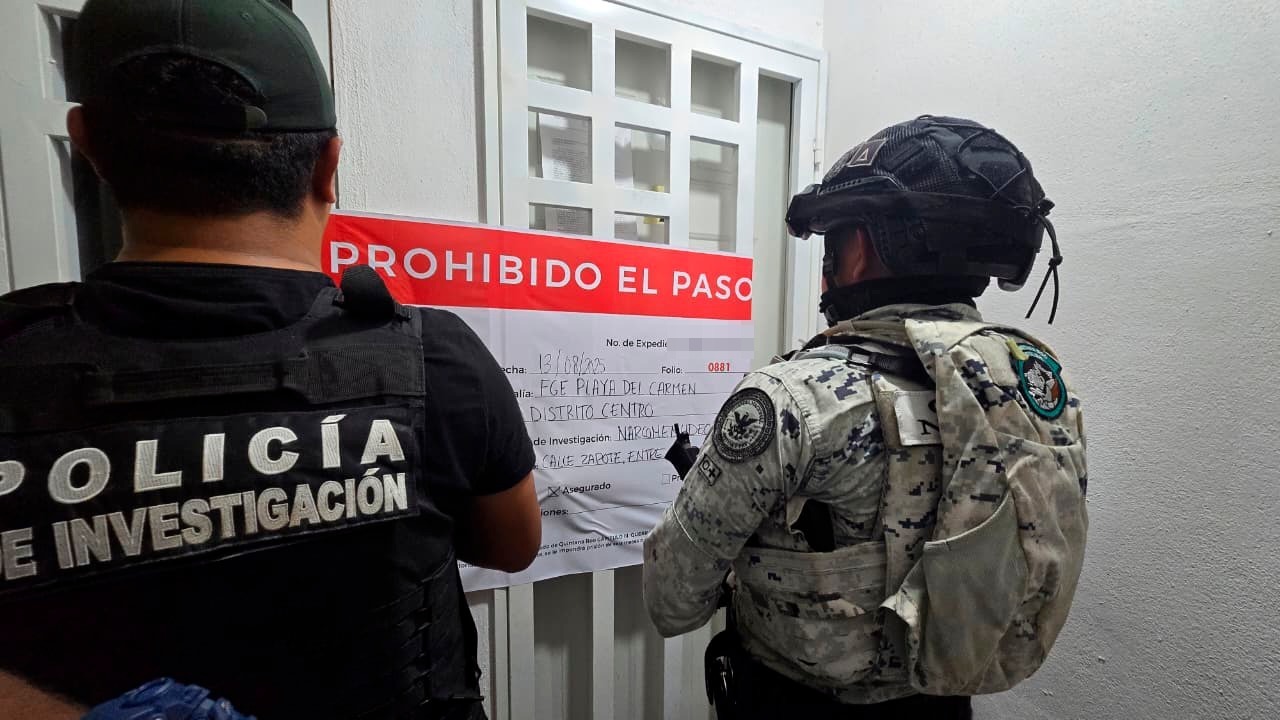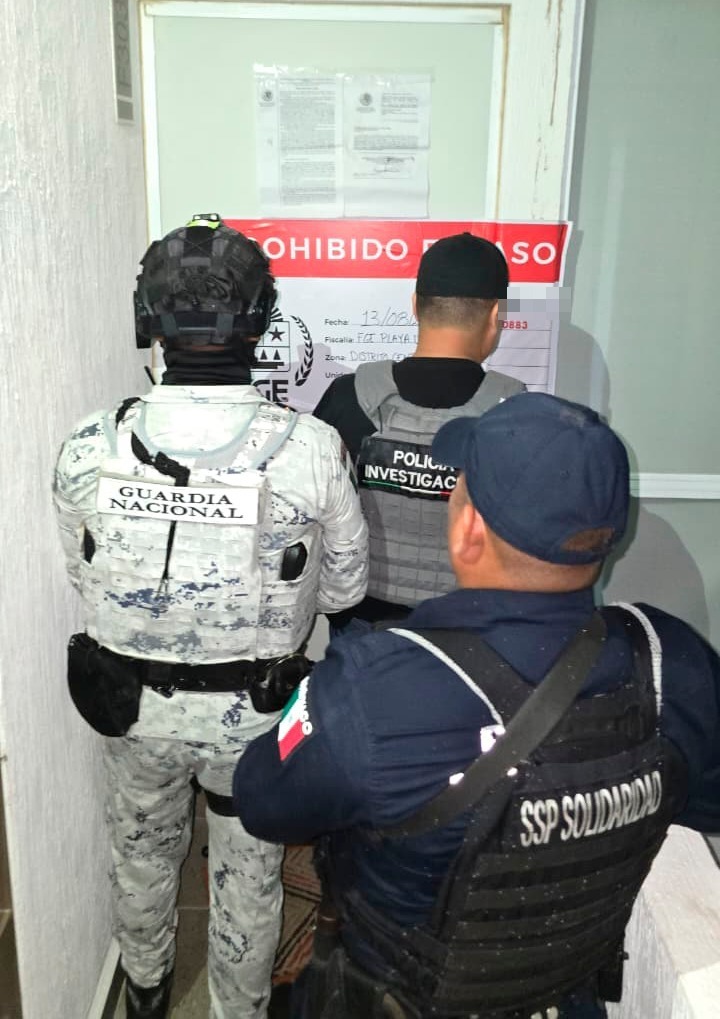 PLAYA DEL CARMEN, QRoo, 15 de agosto de 2025.- En un operativo de alto impacto, efectivos de la Fiscalía General del Estado, en coordinación con la Guardia Nacional y la Policía Municipal, irrumpieron en tres inmuebles de Playa del Carmen donde aseguraron presunta droga, cargadores con municiones y cartuchos metálicos de diversos calibres.