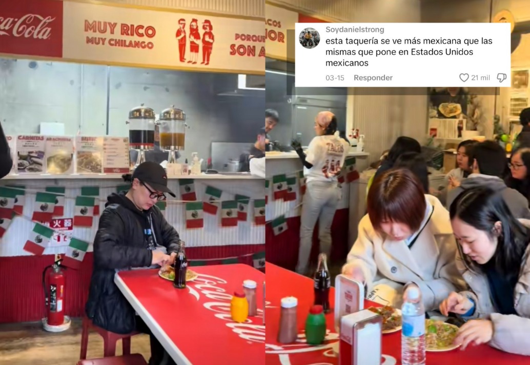 En un video se pueden ver elementos que resultan muy familiares para quienes han visitado este tipo de negocios en México: mesas con publicidad de Coca-Cola, decoración sencilla pero colorida, y un ambiente que remite de inmediato a cualquier esquina popular donde se venden tacos. “Nomás falta el perrito durmiendo y ya está completo”, mencionan de forma sarcástica, haciendo referencia a uno de los elementos más comunes y entrañables en las taquerías mexicanas.Y es que algo que ayudó mucho a replicar el estilo mexicano fue la caligrafía.