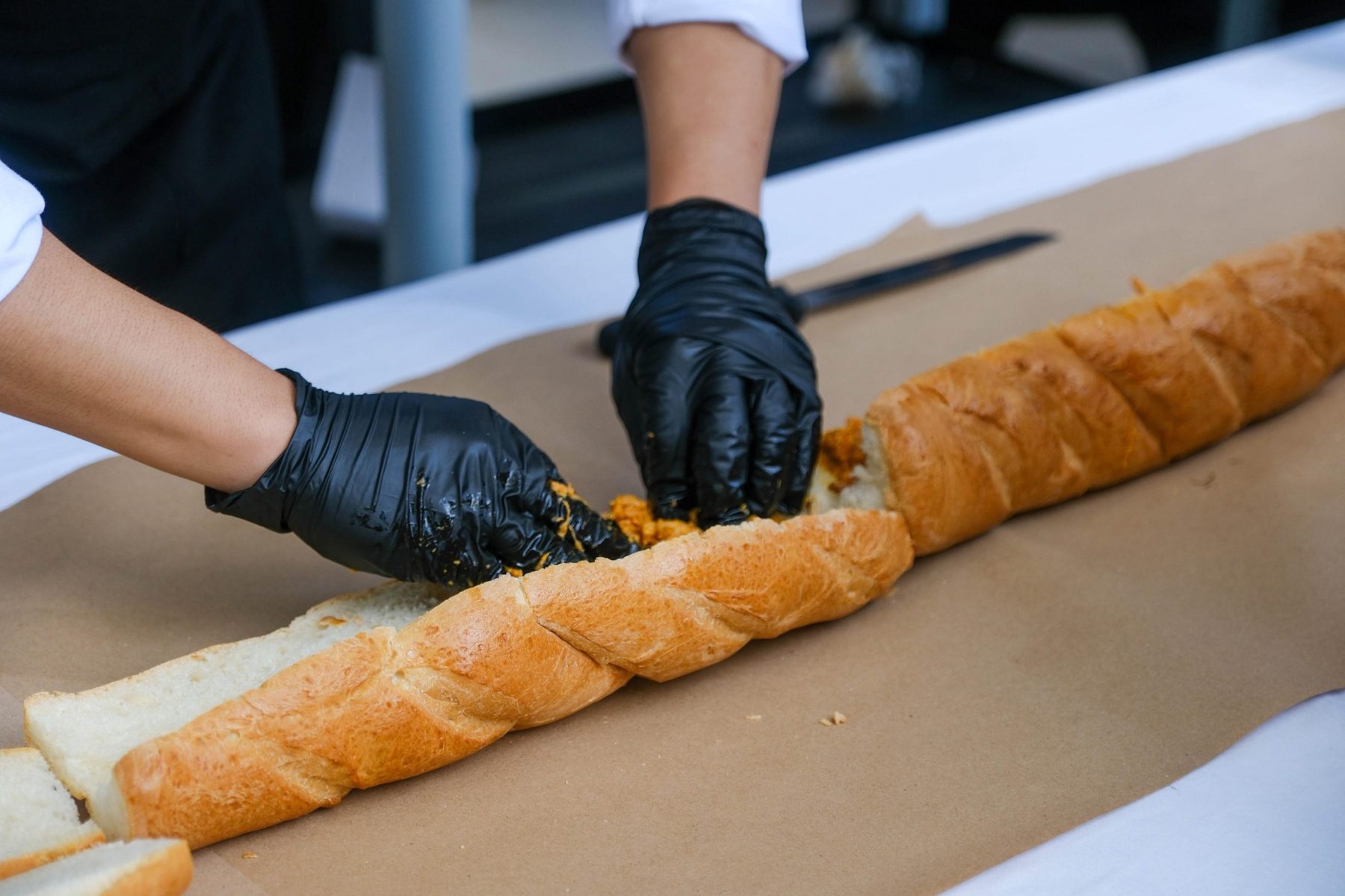 Para su elaboración se requirieron 580 kilos de carne, 1,100 piezas de pan, 120 kilos de cebolla y 13 kilos de chile habanero, entre otros ingredientes.