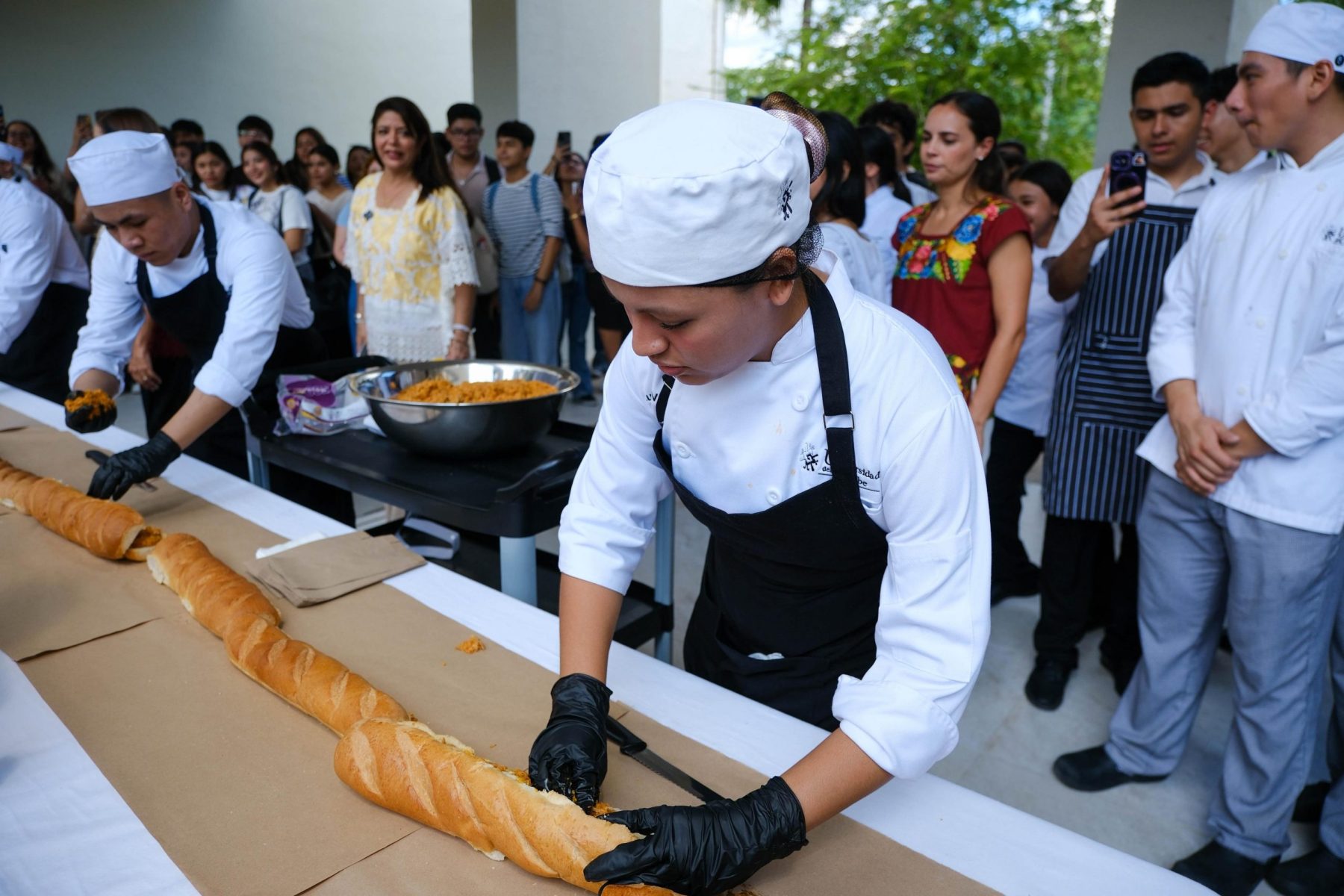La gobernadora Mara Lezama celebró este hecho: “hoy es un gran día porque vamos a romper el récord Guinness con la torta de cochinita más larga, son 300 metros, ellas y ellos son 150 estudiantes con el chef Guillermo Álvarez” afirmó.