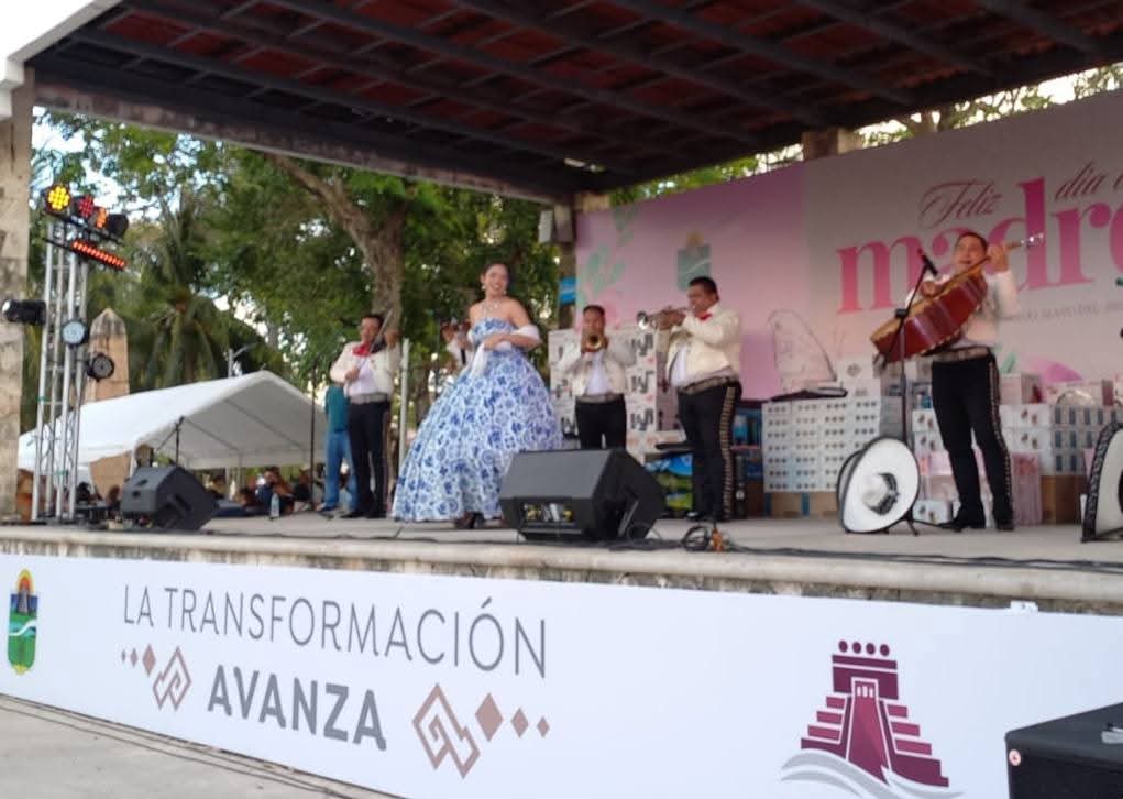 TULUM a 07 de mayo.— En un ambiente festivo, con mariachi, mañanitas y rifas de regalos, el Ayuntamiento de Tulum celebró de manera anticipada el Día de las Madres la tarde de este 7 de mayo, en un evento multitudinario realizado en el parque del Museo de la Cultura Maya y la explanada de la Comuna.